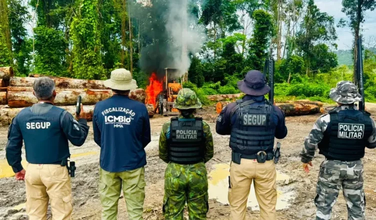As ações de fiscalização são do ICMBio e contam com a segurança institucional de militares agregados da Segup. O foco é o combate ao garimpo ilegal, à exploração ilícita de madeira, ao desmatamento e às atividades logísticas de suporte a ilícitos ambientais.